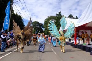 Bupati Gowa, Sitti Husniah Talenrang, melepas peserta Fashion Culture Carnaval yang merupakan salah satu rangkaian ajang Beautiful Malino 2025 hari ke empat, di Jalan Endang, Sabtu (12/7).