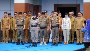 Pemerintah Kabupaten (Pemkab) Gowa menggelar Apel Besar dan Gelar Pasukan Satuan Polisi Pamong Praja (Satpol PP) dan Satuan Perlindungan Masyarakat (Sat Linmas) di Lapangan Upacara Kantor Bupati Gowa, Senin (1/12).